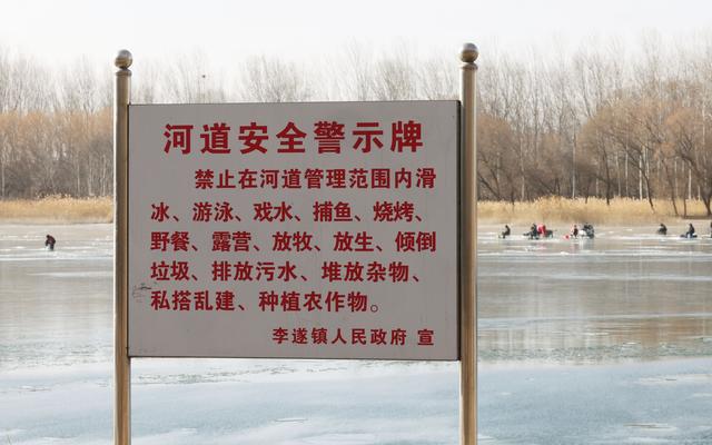 12月25日★,潮白河苏庄闸桥南段河道安全警示牌。新京报记者 王贵彬 摄